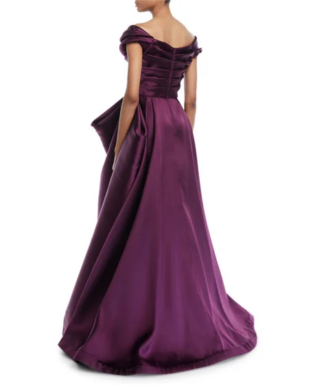 Roland Nivelais, Off-the-Shoulder Gathered Duchess Satin Evening Gown, 2018. Courtesy of the designer and Bergdorf Goodman, New York.
